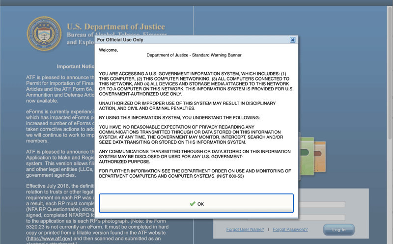 Before you can create an electronic Form 1 Application, you have to accept the ATF’s ‘Terms of Use.’